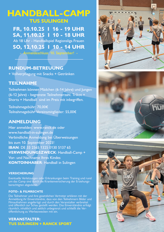 Der Infoflyer zum Handball-Camp 2025 kann im PDF-Format unter folgendem Link auf der Homepage von INTERSPORT RANCK angesehen und heruntergeladen werden: Infoflyer Handball-Camp 2025